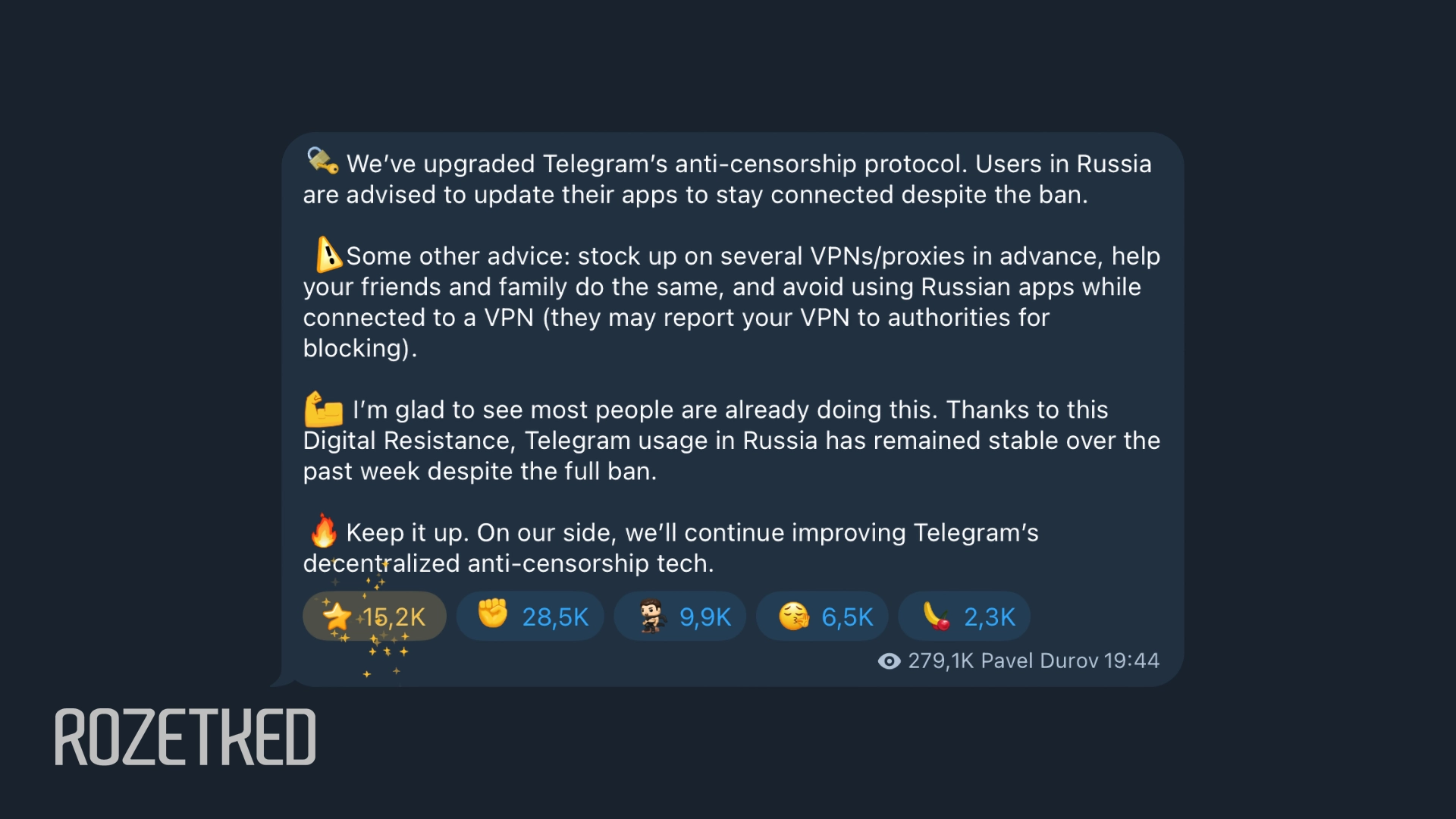 Основатель мессенджера рекомендовал всем пользователям в России оперативно обновить приложение на всех платформах, чтобы Telegram работал и дальше.
