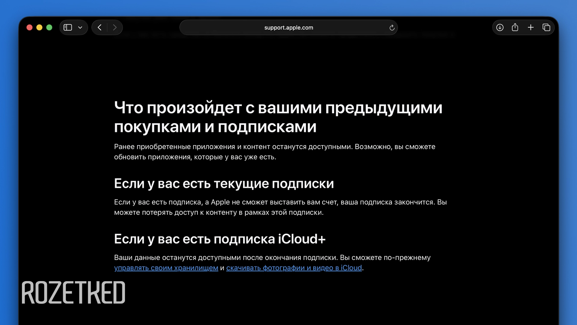 Apple может сохранить данные в iCloud+ после окончания подписки — как исключение для России