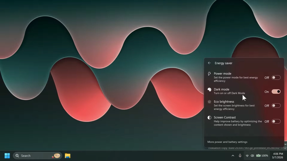 Microsoft добавила переключатель тёмной темы в панели быстрых настроек Windows