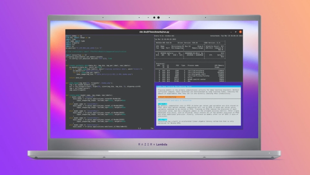 Игровой бренд Razer выпустил ноутбук на Linux. Да, на этой платформе тоже есть Steam, но дело вовсе не в этом. Модель Tensorbook на базе ноутбука Blade 15 создана совместно с производителем оборудования для нейровычислений Lambda. Поэтому здесь предустановлены фреймворки и инструменты для работы с машинным обучением, включая PyTorch, Tensorflow, CUDA и cuDNN. А производительность в бенчмарках по ИИ превышает результаты Apple M1 Max вчетверо.