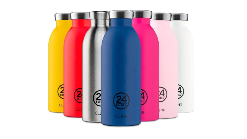 Итальянский бренд 24 Bottles делает бутылки и кружки с офигенными расцветками: от обычных стальных до мраморных и градиентных. Есть обычные под воду, есть термосы и даже мини-версии для детей. Стоят от 2 до 5 тысяч. Можно таскать в рюкзаке, можно брать в спортзал, вообще универсальная штука.