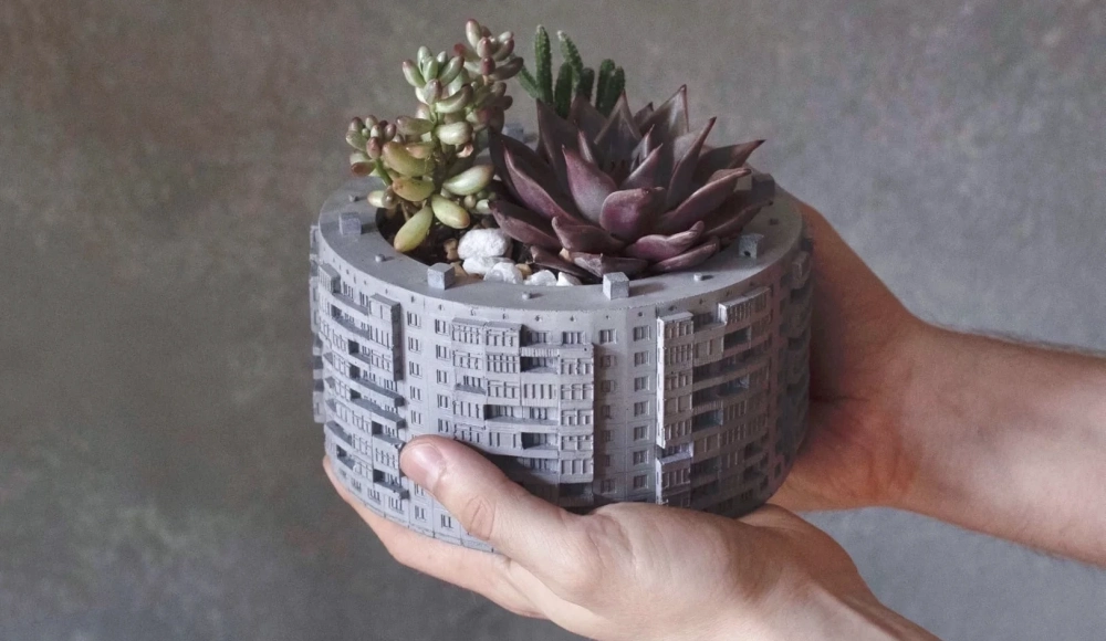 Кашпо в виде панельного дома из бетона