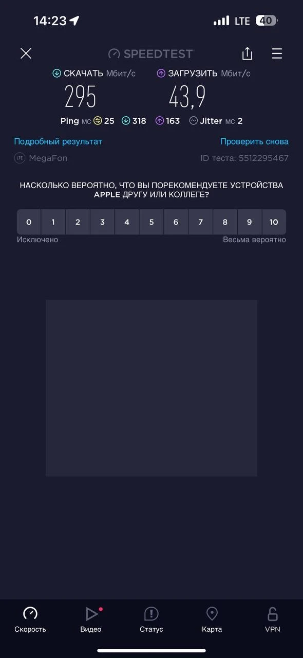 Если сложить и поделить, средняя скорость на скачивание — 421 Мбит/с!