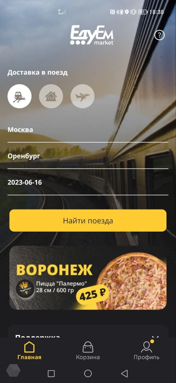 Усомнившись, не является ли «ЕдуЕм» часом дубликатом сервиса РЖД в отдельном приложении, узнал через поддержку, что нет, ребята сами развивают свой сервис, находят партнёров в городах и сёлах, чтобы было кому доставлять еду, а РЖД идут по стопам на всё готовенькое, пытаясь заключать контракты с теми же кафе, которых уже до этого нашли создатели приложения и сервиса. Но тут ребятам повезло: криворукость разработчиков РЖД можно оценить ещё на моменте оформления билетов на поезд онлайн. Поэтому то, что заказ еды к поезду от РЖД не сработал ни разу — я даже не удивился.