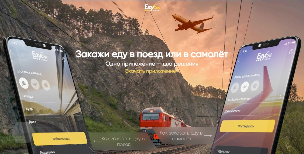 Не так давно появилось приложение «ЕдуЕм». Идея – заказ из кафе и ресторанов с доставкой именно к вашему поезду и к вашему вагону во время остановки вашего поезда по маршруту.