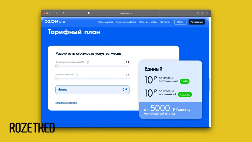 С августа мы ввели ежемесячный тариф, оплата будет происходить только в том случае, если клиент использовал ОРД для передачи данных в ЕРИР. Если кабинетом ОРД не пользовались, то есть ничего не маркировали и не вносили изменение в уже переданные данные, то и платить не нужно будет. У нас есть минимальный платёж в месяц — 5000 рублей. Стоимость оказываемых услуг складывается из объёма загружаемых креативов (1 МБ — 10 рублей) и полученных маркеров (1 идентификатор рекламы — 10 рублей). Мы оказываем своим пользователям техническую поддержку и консалтинг по вопросам работы.