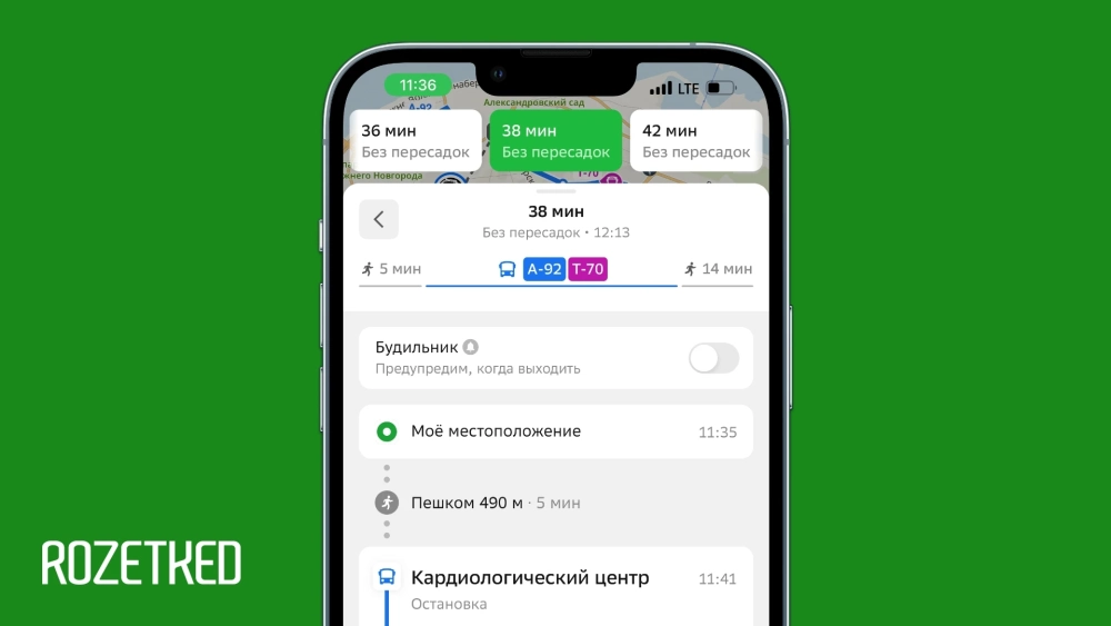 Приложение отправит пуш, когда вы будете рядом со своей остановкой. Можете собирать вещи и направляться к выходу. Следить за движением маршрутки больше не придётся.