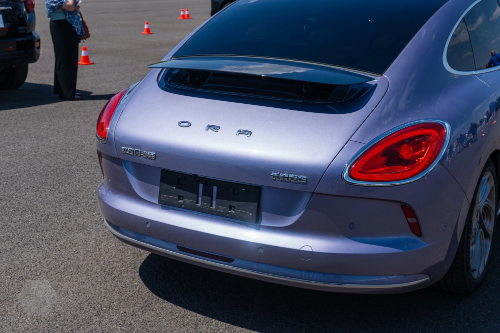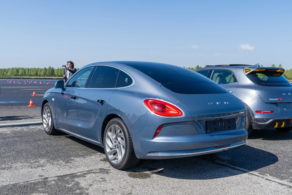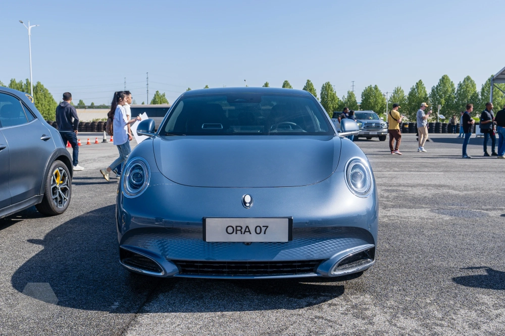 А вот про следующую машину рассказать хочется. Это электрический седан Ora 07. Забегая вперёд: для меня это самая интересная новинка из всех, которые удалось протестировать на полигоне.