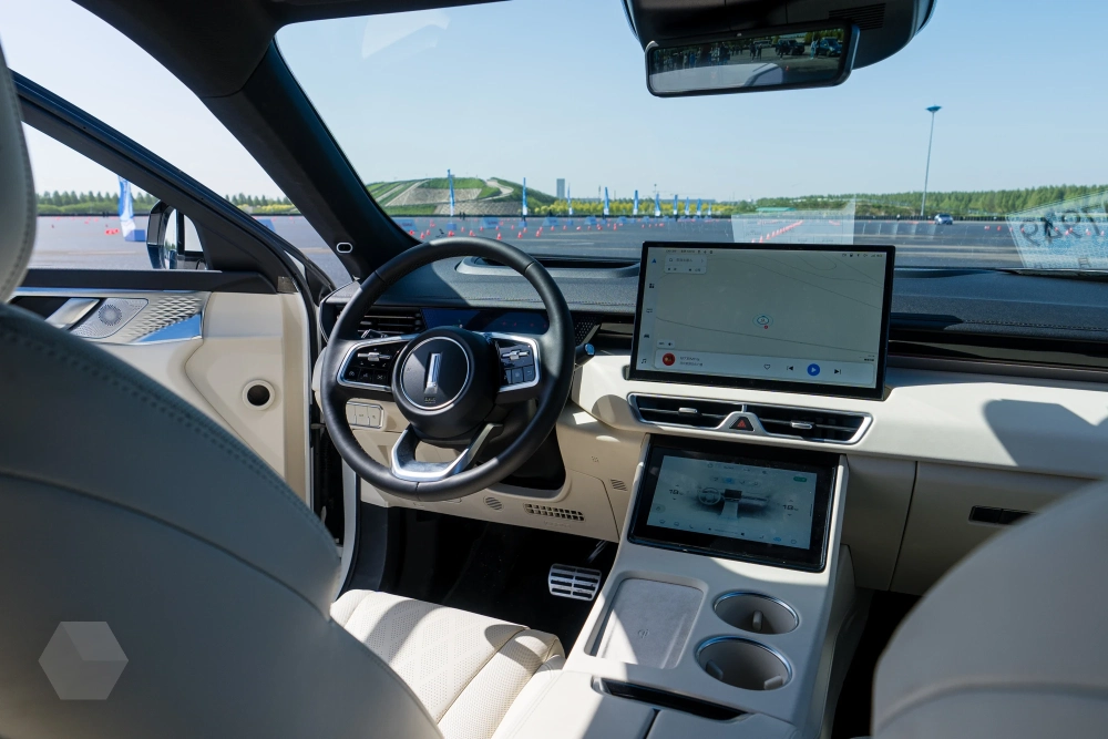 Тест-драйв по тому же принципу, что и Ora 07. Разгон для своих габаритов у Wey 05 крайне бодрый — 4,8 секунды до сотни. Торможение уверенное, а змейка обходится без ощутимых кренов и заваливаний. Центр тяжести у кроссовера достаточно низкий, потому что машина всё же больше предназначена для городских поездок. Можно, конечно, и на бездорожье, но диски тут на 21 дюйм, да и клиренс всего 180 мм, поэтому без фанатизма.