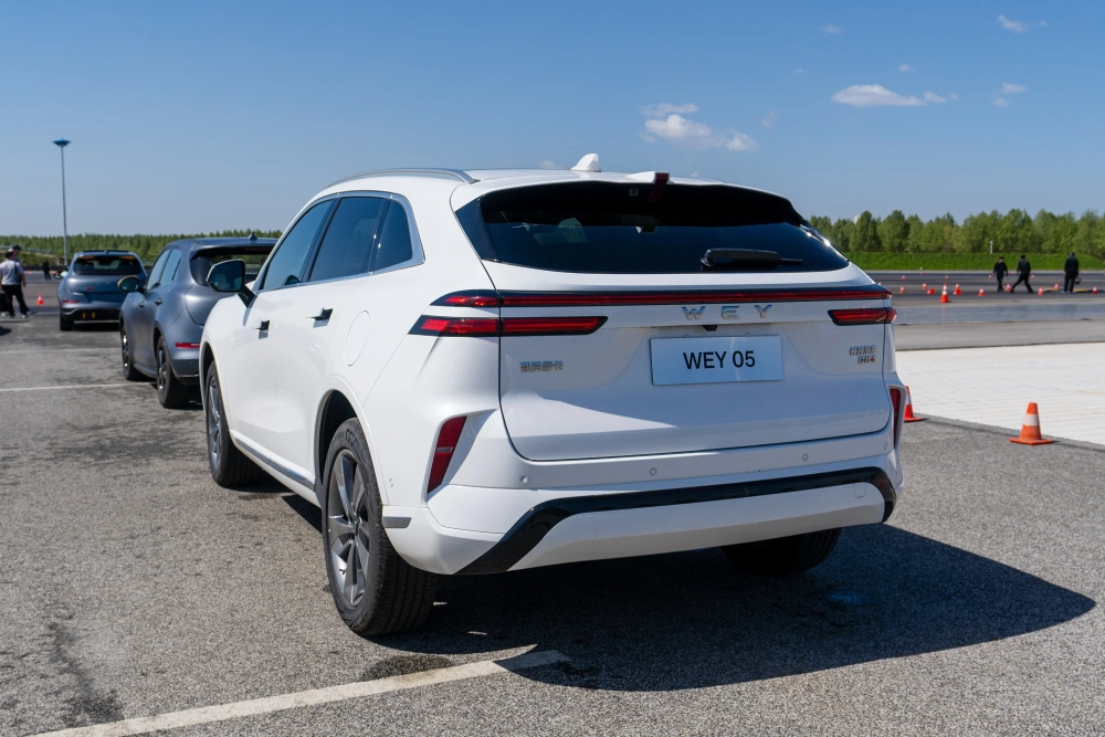 Премиальный бренд Wey пришёл в Россию в начале этого года с моделью 05. Это гибридный кроссовер с двухлитровым бензиновым двигателем, электромотором и ещё одним электрическим мотором на задней оси, общая мощность которых составляет 421 л.с. (310 кВт), максимальный крутящий момент 847 Н∙м. Его мы планируем взять на тест-драйв отдельно, поэтому в подробности сейчас углубляться не буду. Хотя конкретно эта версия (05) имеет несколько отличий от той, что продаётся у нас.