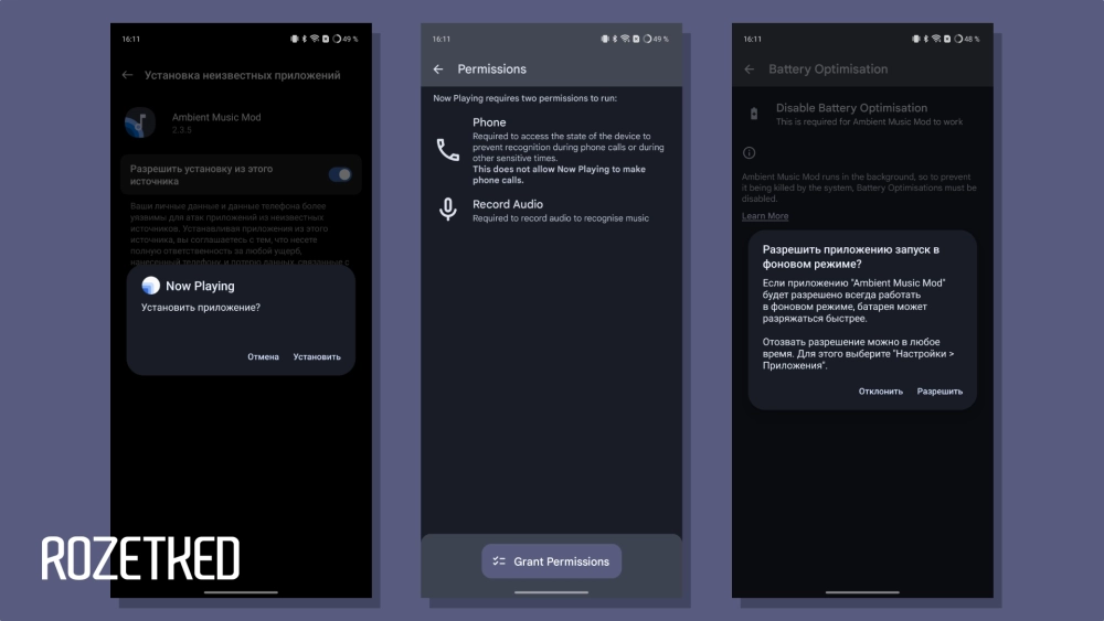 - Следуйте инструкциям на экране, чтобы установить Now Playing. Скорее всего, понадобится выдать разрешение на инсталляцию программ из неизвестных источников.