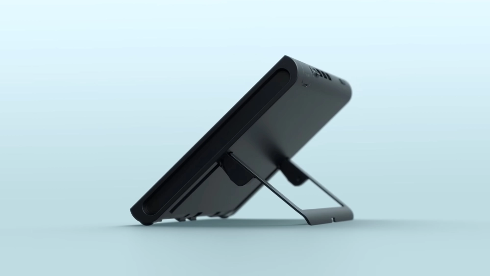 В-третьих, обновили подставку на задней части «тушки», сделав её в виде буквы «U». Подставка нужна для использования консоли в режиме планшета с отсоединёнными контроллерами. Высоту можно будет регулировать, опуская экран чуть ли не в упор.