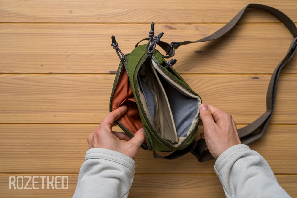 По минусам за время использования отметил только, что не хватает кармана на молнии в центральном отделении. В остальном — отличный и красивый слинг.