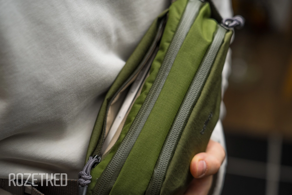 Постоянно с рюкзаком ходить тоже не хочется, иногда достаточно просто телефона с очками и наличкой. Для этого пригодится слинг или, как его ещё называют, «бананка». У меня уже есть один из лучших слингов Aer City Sling 2, который в России хрен купишь.
