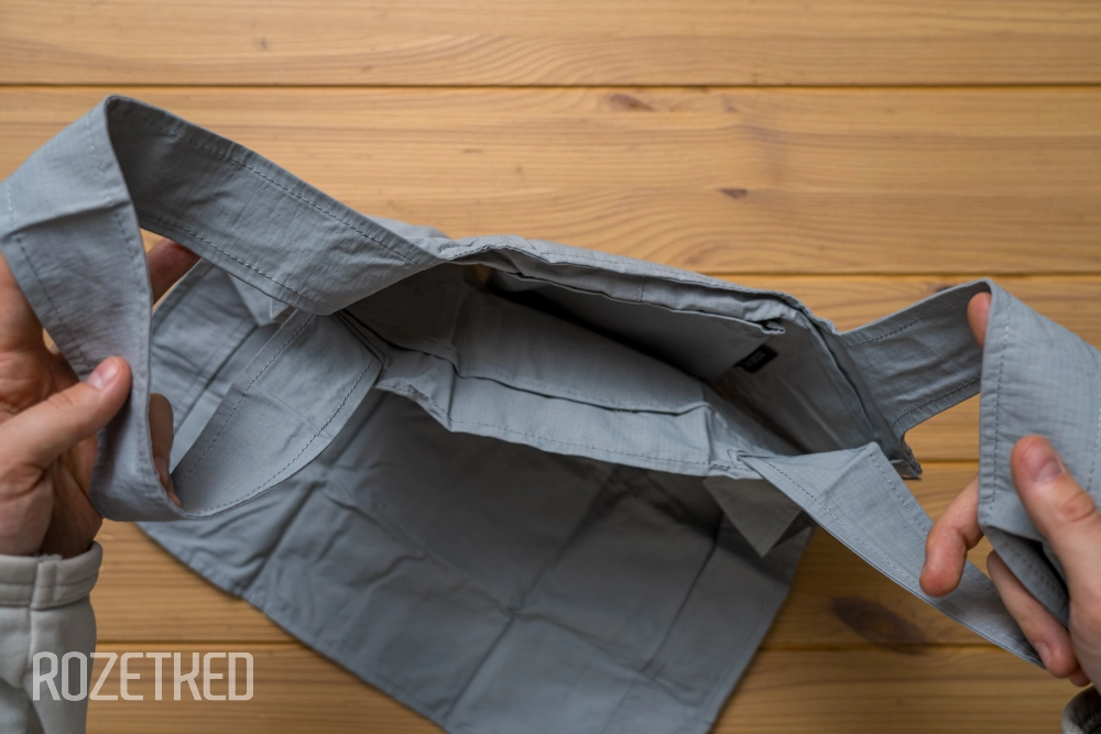 Внутри никакой организации, только небольшой кармашек, который также служит чехлом для сумки, если вы её сможете свернуть.