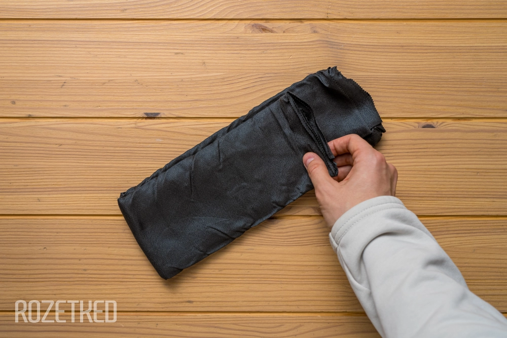 Я выбрал голубое NanoDry Packable Beach Towel и чёрное Ultralight Travel Towel. Оба полотенца выглядят как огромные салфетки для мониторов. У первого есть карман на молнии, куда полотенце сворачивается (туда же можно положить смартфон, например, или ключи от номера). У второго отдельный чехольчик, а на самом полотенце есть петелька-фастекс, чтобы вешать на крючок.