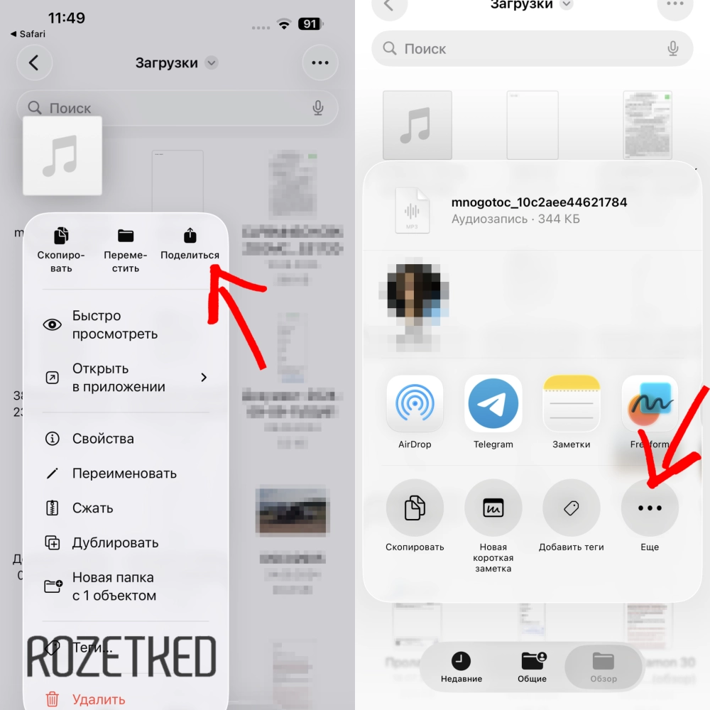 - В контекстном меню нажать на «Поделиться», а потом — на «Ещё».