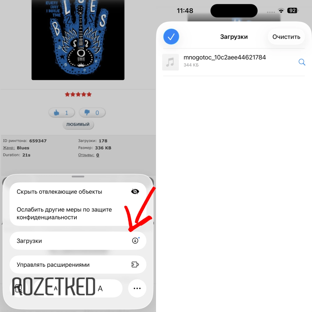 - Найти и скачать любой MP3- или M4A-файл длительностью до 30 секунд через Safari или другой браузер — например, со специальных сайтов с рингтонами.