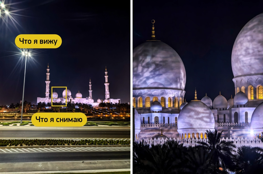 Конечно, имеется и комбинированное приближение (оптический зум + кроп сенсора + алгоритмы) — вплоть до 100х. И промежуточные варианты, тоже с кропом: 5х или 7х. А с микродрожаниями справляется система оптической стабилизации со сдвигом матрицы.