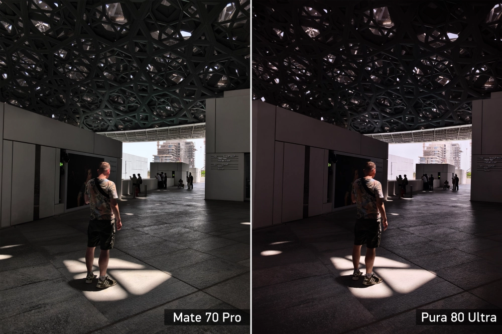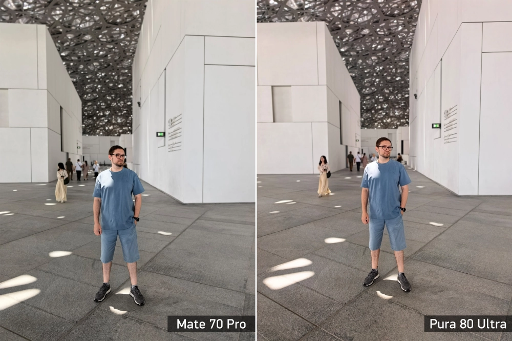 Ещё одна характерная черта камерафонов Huawei — спектральный сенсор, который используется для уточнения цветовой температуры кадра. При этом инженеры явно пересмотрели настройки датчика, потому что прошлогоднего Mate 70 Pro, у которого он тоже имеется, выдаёт более тёплые картинки. Смотрите сами: