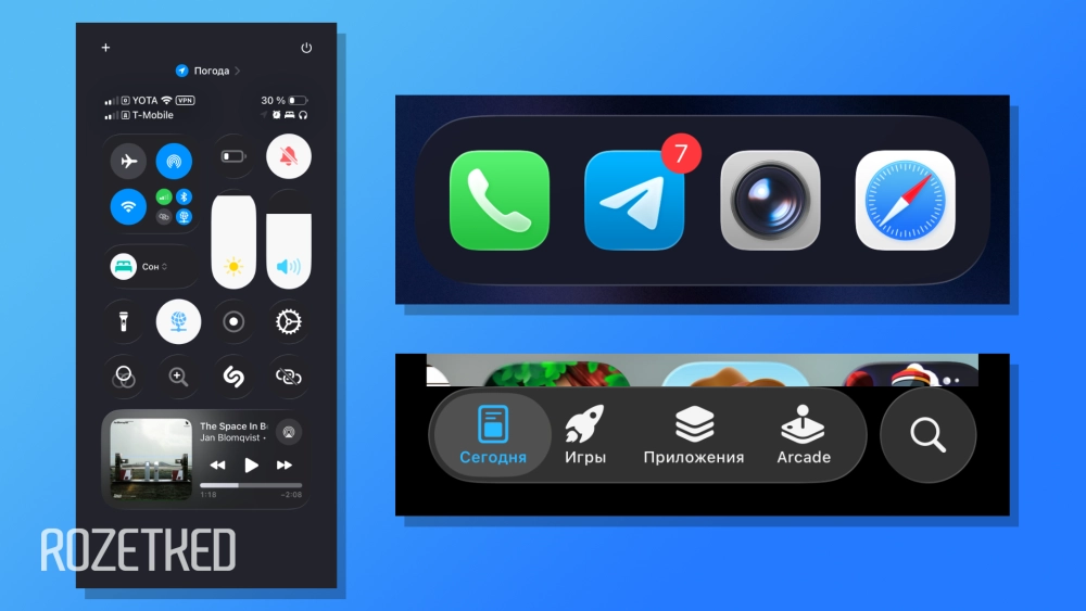 Опция не убирает стиль Liquid Glass полностью: отблеск вокруг кнопок, «плавающие» панели в приложениях и новые анимации останутся. Зато «Понижение прозрачности» наверняка сэкономит пару процентов заряда: устройству не придётся тратить ресурсы на размытие.