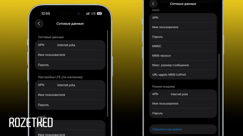 С 2022 года Apple перестала принимать и распространять в iOS операторские настройки для российских сетей. На всех моделях, вышедших после этого (iPhone 14 и новее, включая iPhone 17), отсутствуют предустановленные параметры APN.