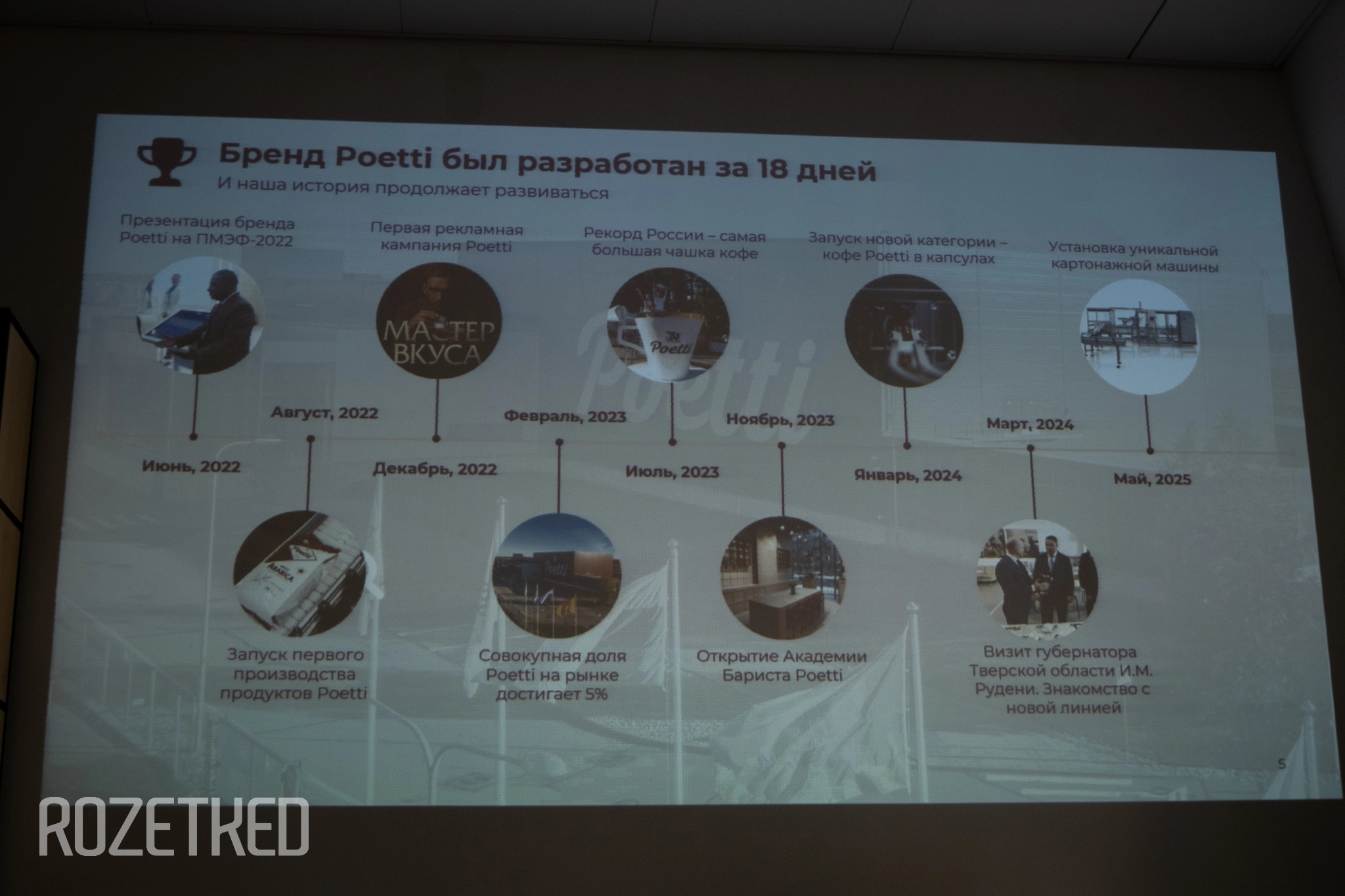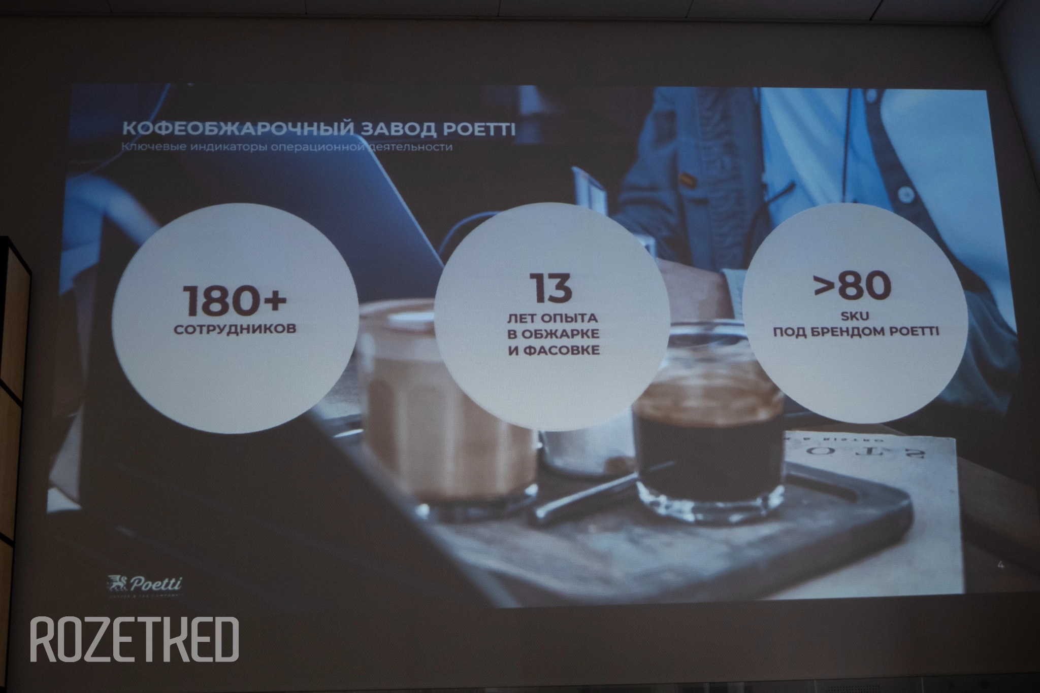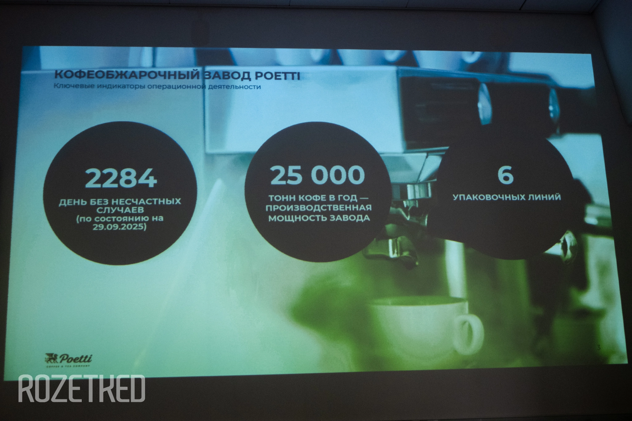 Кофеобжарочное предприятие в Тверской области работает более 14 лет, ежегодно увеличивая производительность и внедряя новые технологии в области безопасности труда. Кофейные рецептуры и бренд Poetti разработала команда с опытом более 10 лет в кофейной индустрии и всего за 18 календарных дней.