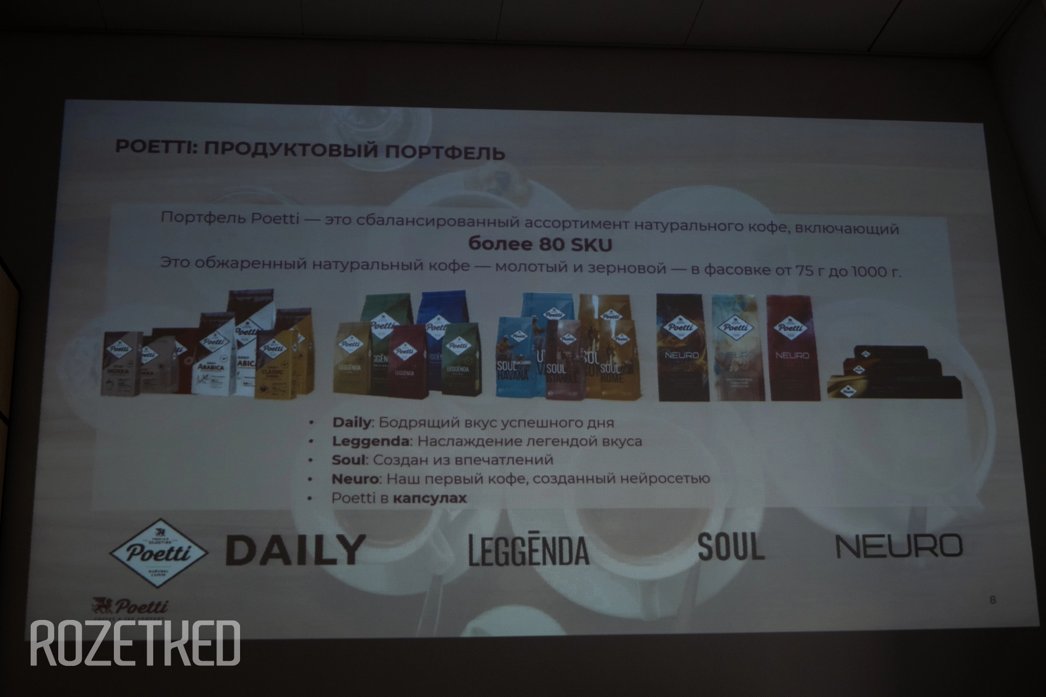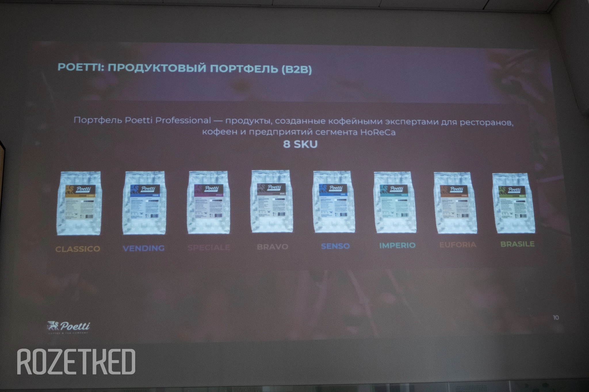 Готовый кофе грузят по фурам и развозят по предприятиям «Вкусно — и точка» по всей стране. Poetti продаёт кофе и под своим брендом, но для «Вкусно — и точка» бленды уникальные.