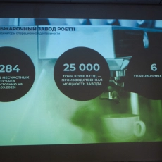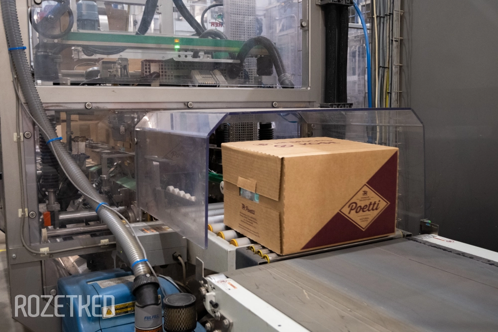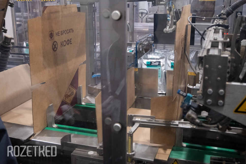 Мощности завода Poetti рассчитаны на производство до 25 тысяч тонн кофе в год. В цехах установлено 6 линий упаковки для разных форматов, и вся система функционирует с минимальным привлечением людей.