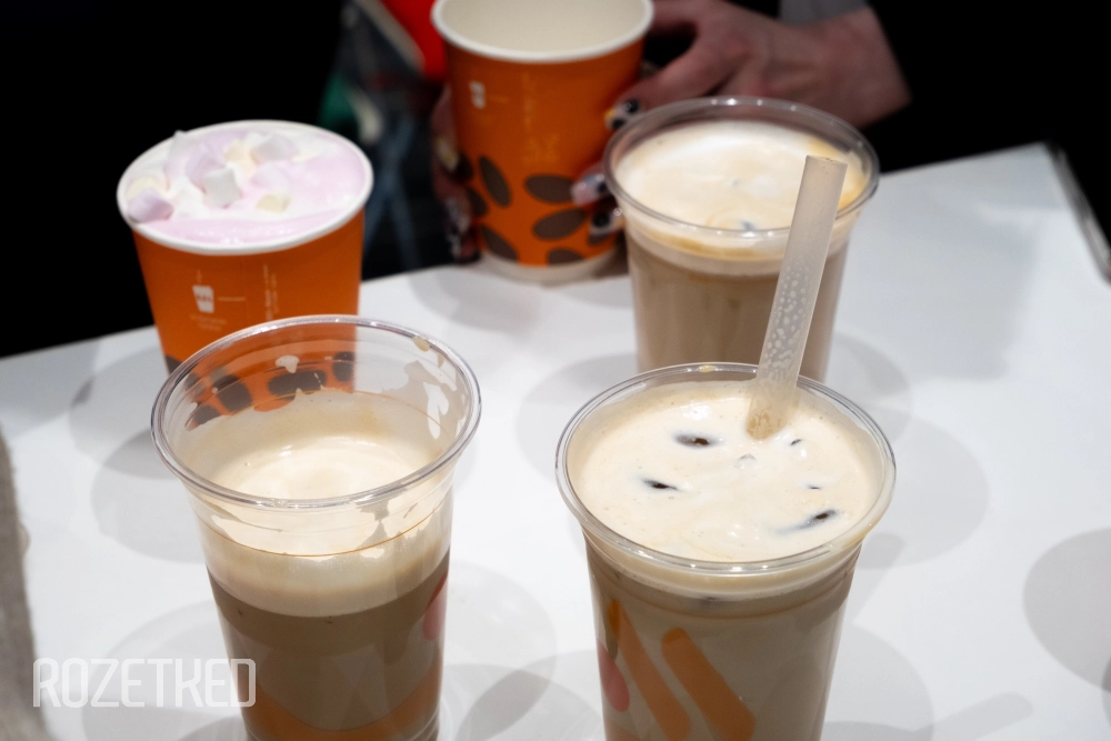 После экскурсии нас ожидала дегустация новых осенних напитков «Вкусно — и точка». Интересно, что разработка сезонных позиций идёт за год до их непосредственного запуска в меню. То есть уже сейчас команда знает, какие напитки выйдут осенью 2026 года. Вот такой далёкий горизонт планирования.