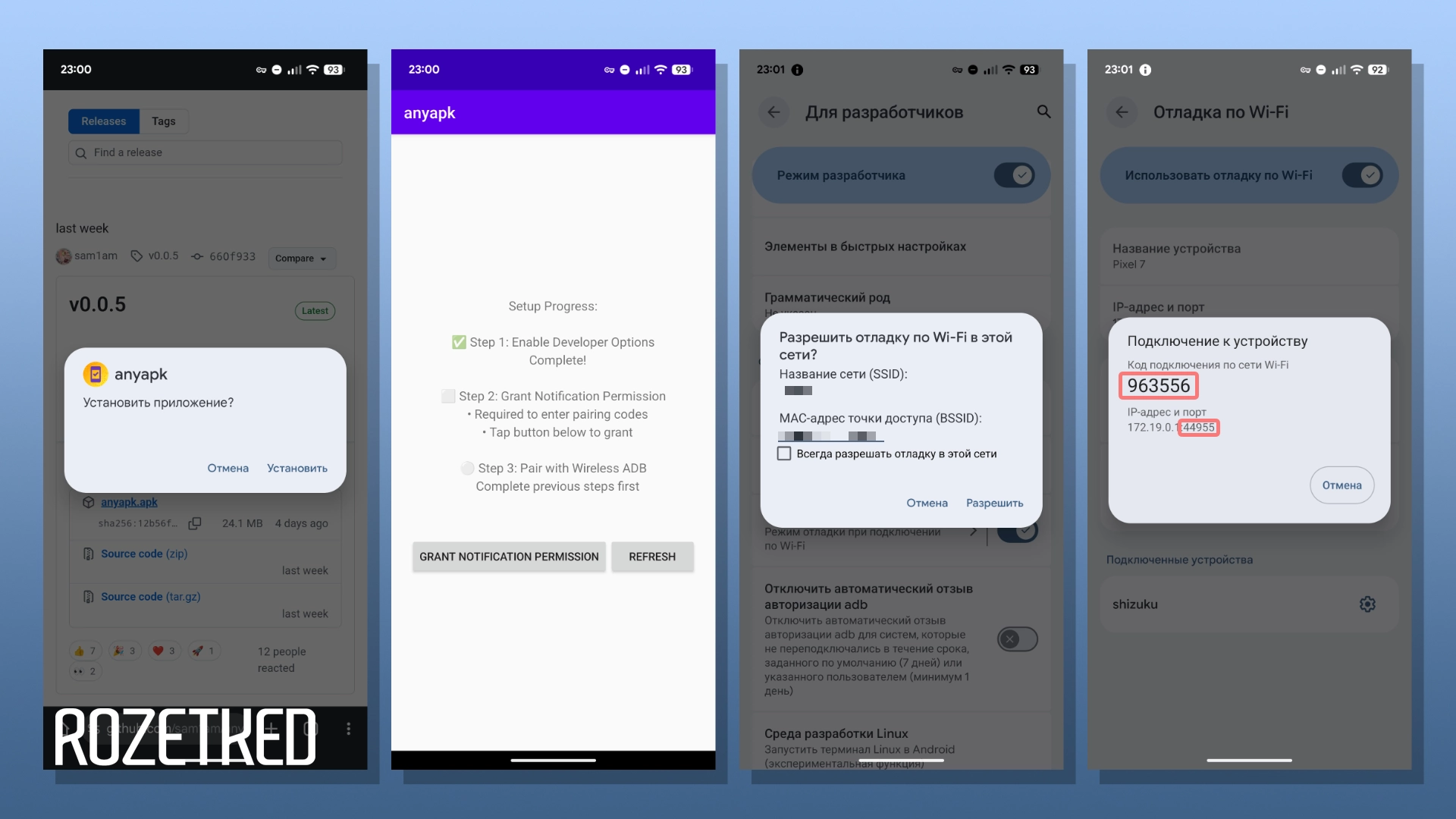 Чтобы не дёргать компьютер при каждой установке приложения в обход правил, можно обойтись локальным решением. Утилита anyapk способна установить соединение через ADB локально. Процедура настройки схожа с инструментом Shizuku.