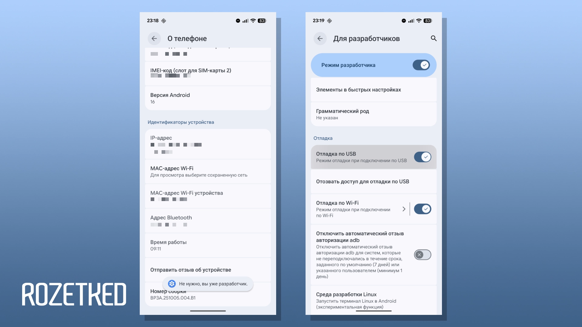 - Разблокируйте настройки для разработчиков: на большинстве оболочек для этого необходимо найти пункт «Номер сборки» в системных настройках и быстро нажать на него несколько раз.