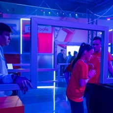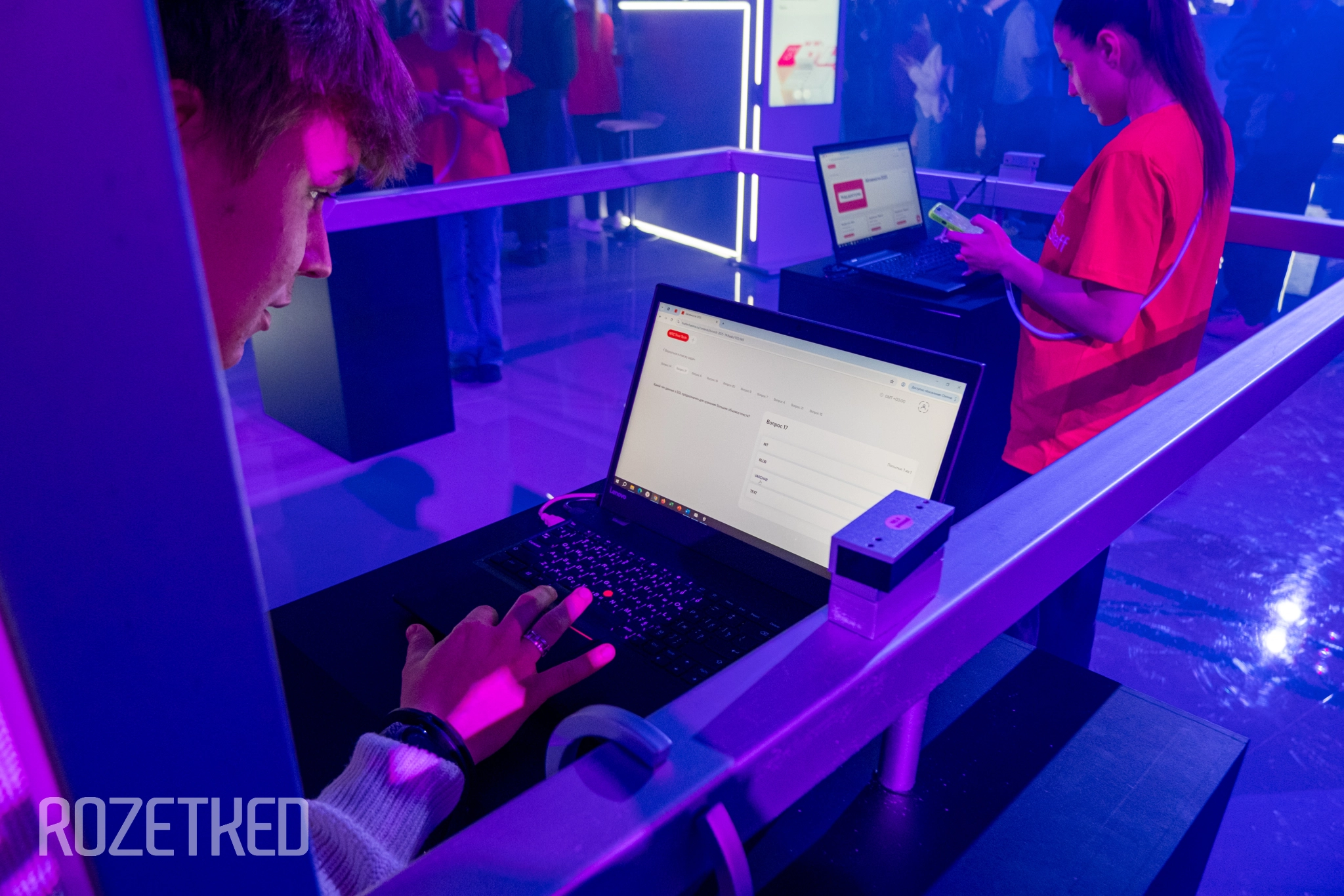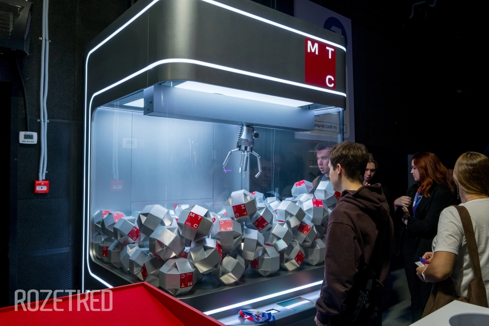 Сразу на входе встречает две большие очереди. Первая стоит к кран-машине, из которой можно достать разные ништяки и подарки от МТС. А вторая — в мерч-шоп, для тех, кто уже заработал достаточно коинов и готов их потратить. Только их сначала надо заработать.