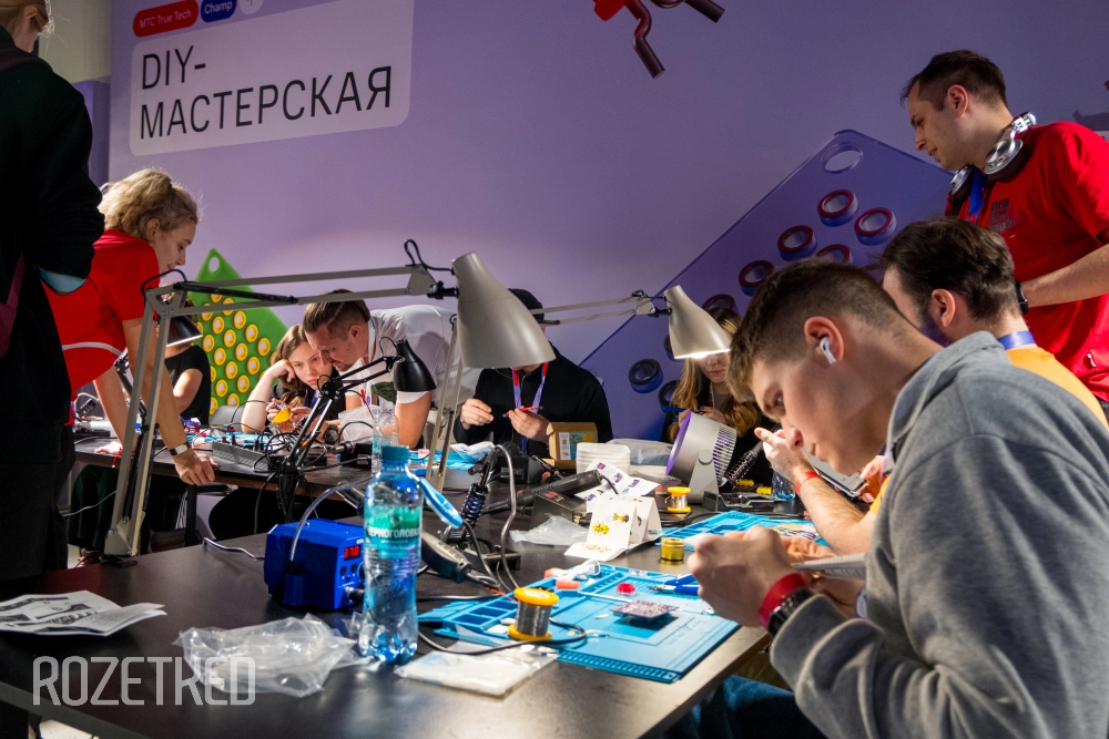 Тут же рядом DYI-мастерская — хватаешь инструкцию, паяльник и собираешься себе мини-робота. Или садишься за стол взломщиков и медитативно ковыряешь отмычками замки. Хотите ещё проще — можно поучаствовать в забеге с помощью тряски своего смартфона.