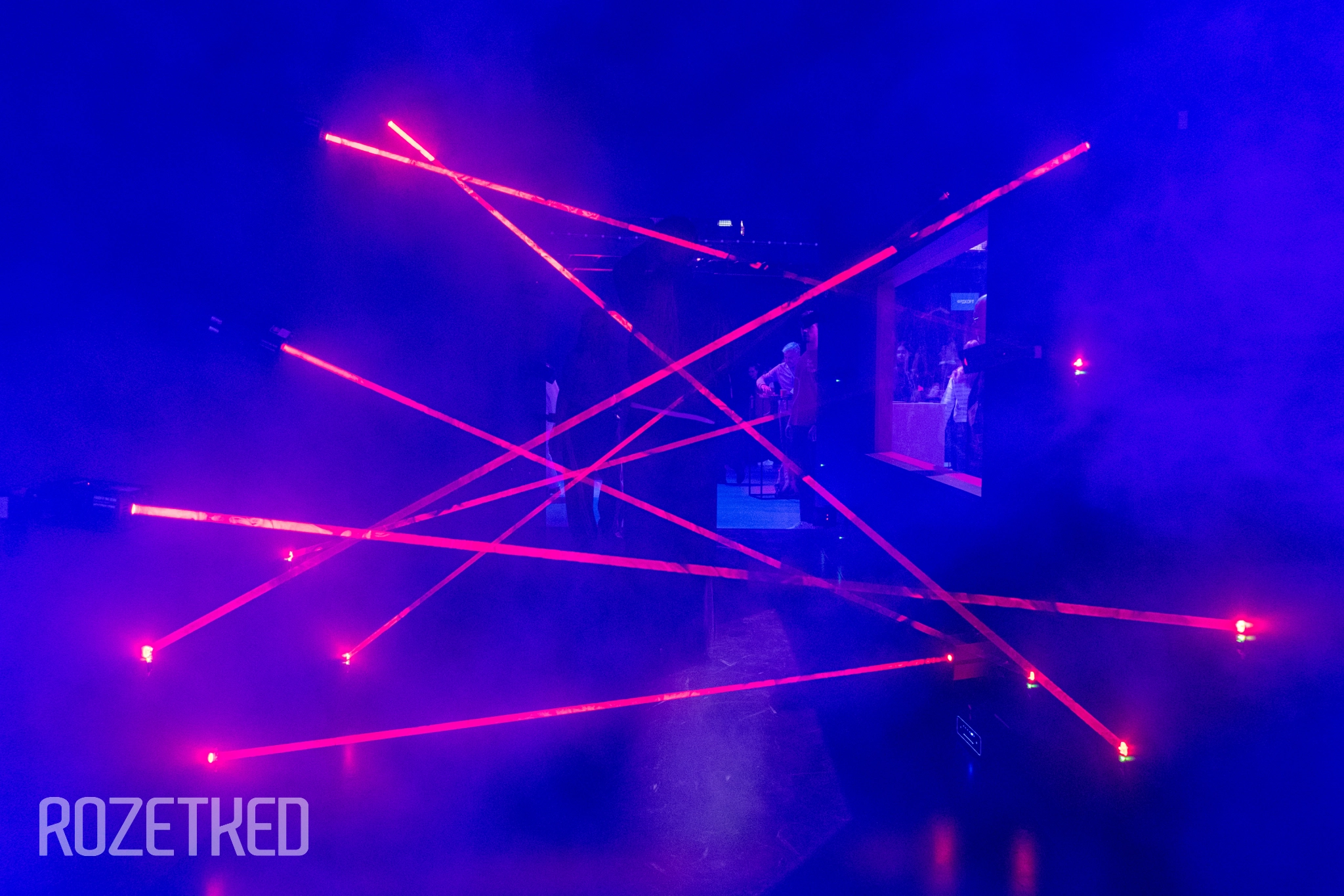 Дальше добро пожаловать в лазерный лабиринт — аттракцион, где нужно пройти комнату, не задев лазерные лучи, как в шпионском кино. Но опять же — сперва реши задачу, а потом уже ползай между лучами.
