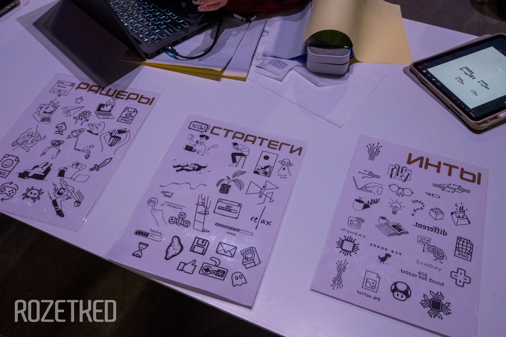 А для самых хардкорных программистов был даже тату-салон. Да, прямо на IT-фестивале можно было набить настоящую (перманентную) тату по готовому эскизу, своему или сгенерированному через нейронку.