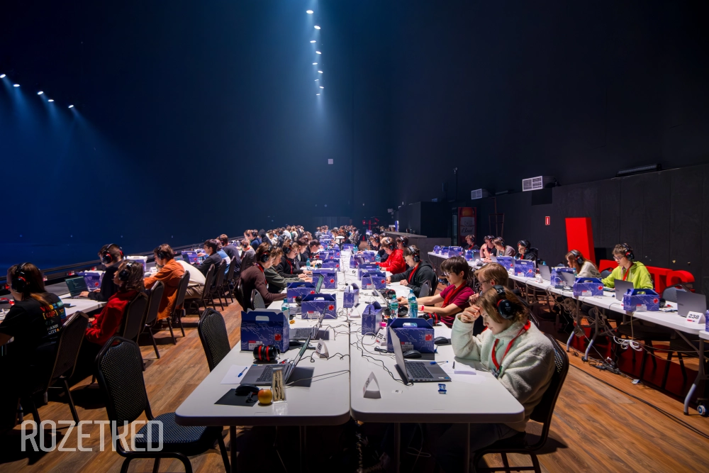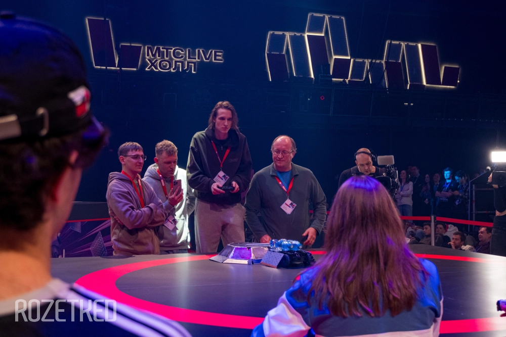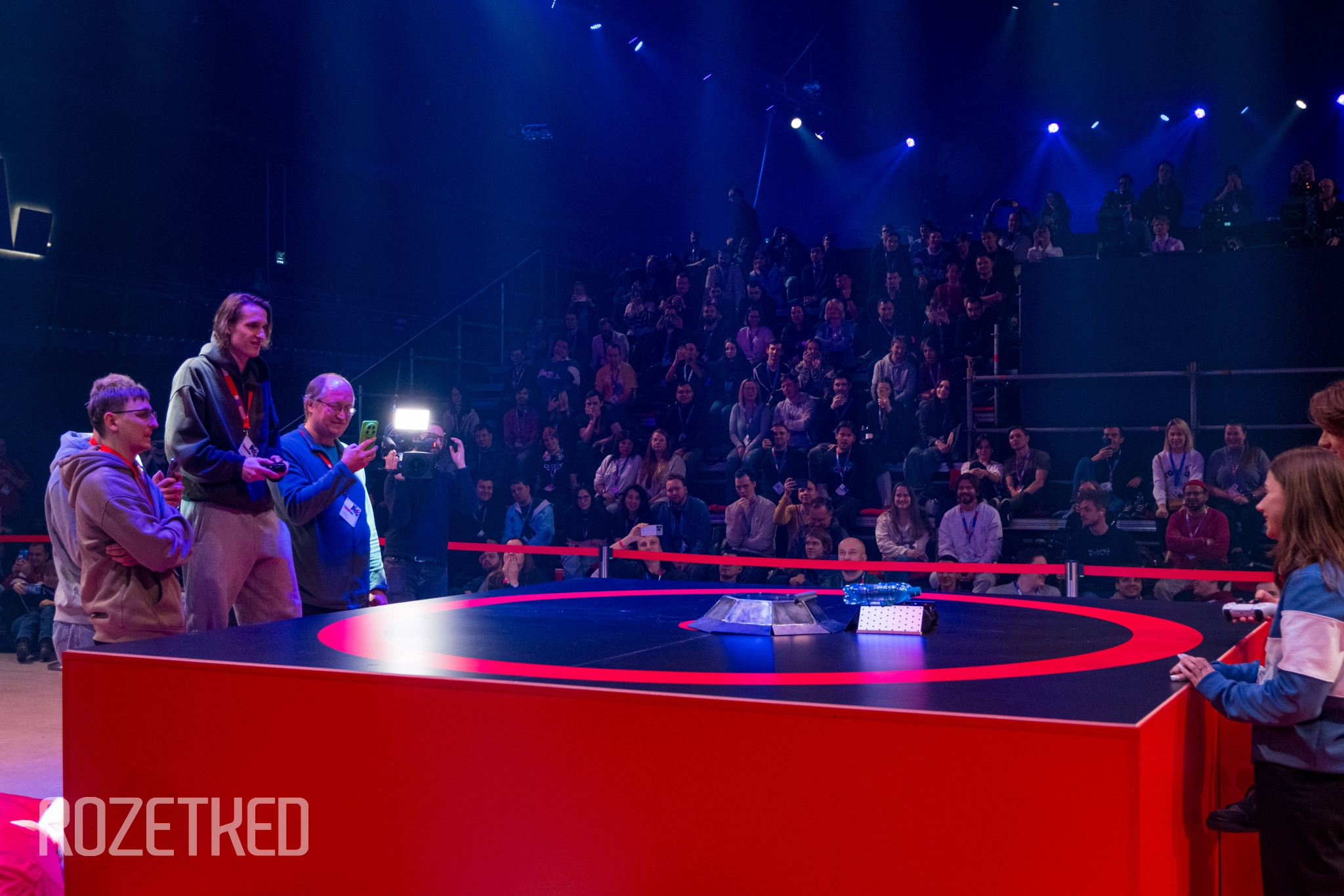 Одни — решали сложнейшие алгоритмические задачи, другие — командно программировали реальных роботов, чтобы те прошли череду испытаний. Первых ребят никто не трогал, все сидели в берушах, погружённые в процесс. А вторую часть соревнования превратили в настоящее шоу с комментаторами и болельщиками. Кодинг как зрелище? Почему бы и нет!