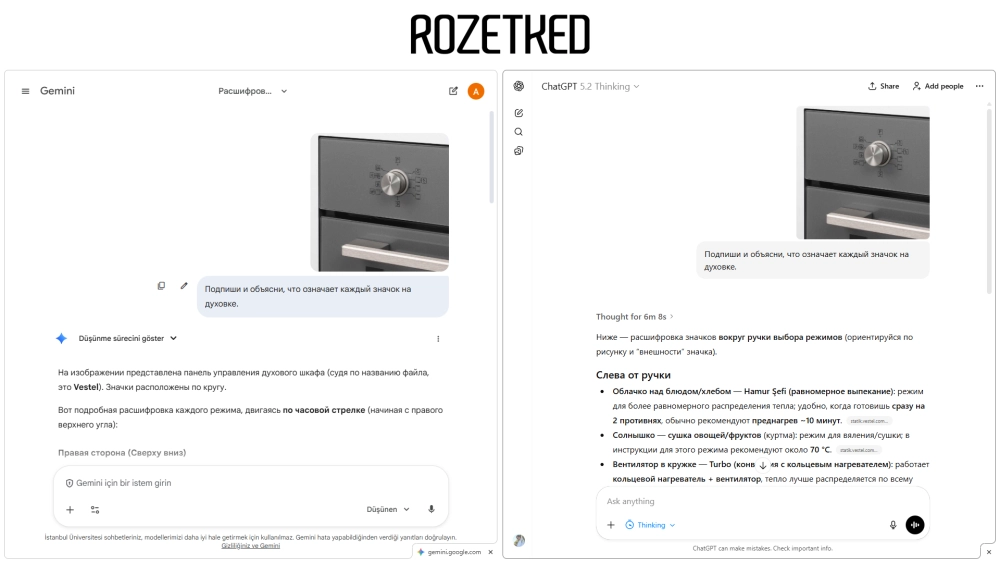 Она нарезала исходное фото на кусочки, сопоставив каждую иконку с описанием, и даже корректно перевела специфические турецкие режимы (запрос к GPT выполнялся по IP из Турции) вроде Hamur Şefi (выпечка хлеба) и Yoğurt (Йогурт).