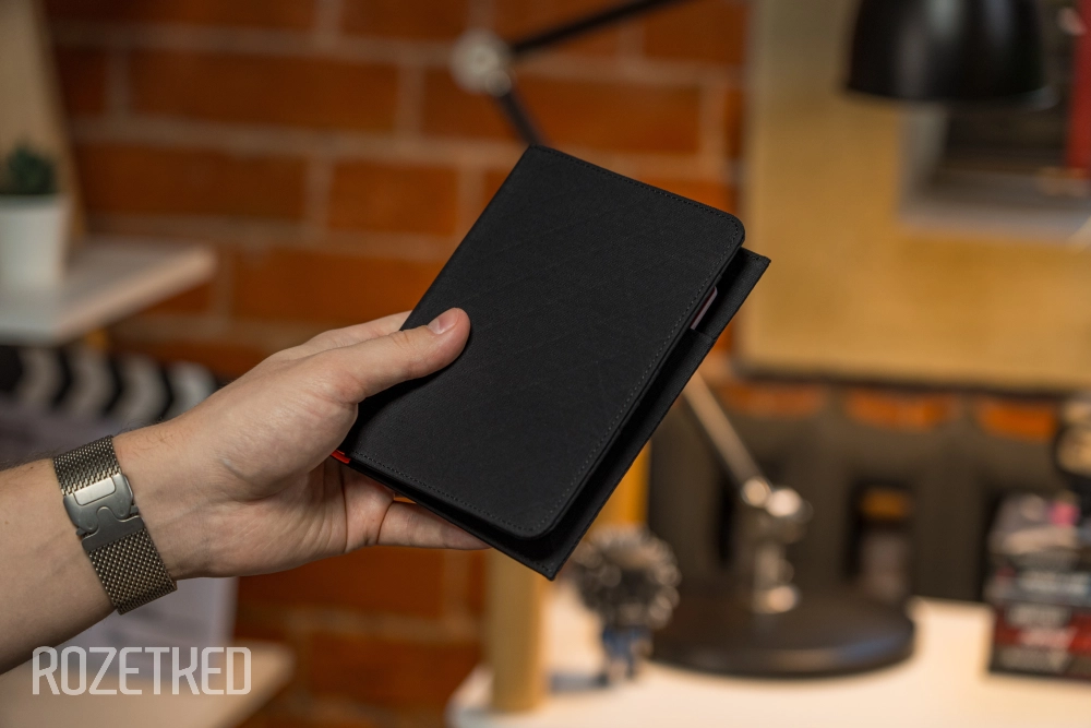 Крышка держится за счёт стягивающей резинки, и при желании её вообще можно снять и использовать отдельно как подставку или зарядку — да, в неё встроена беспроводная Qi-зарядка мощность до 15 Вт.