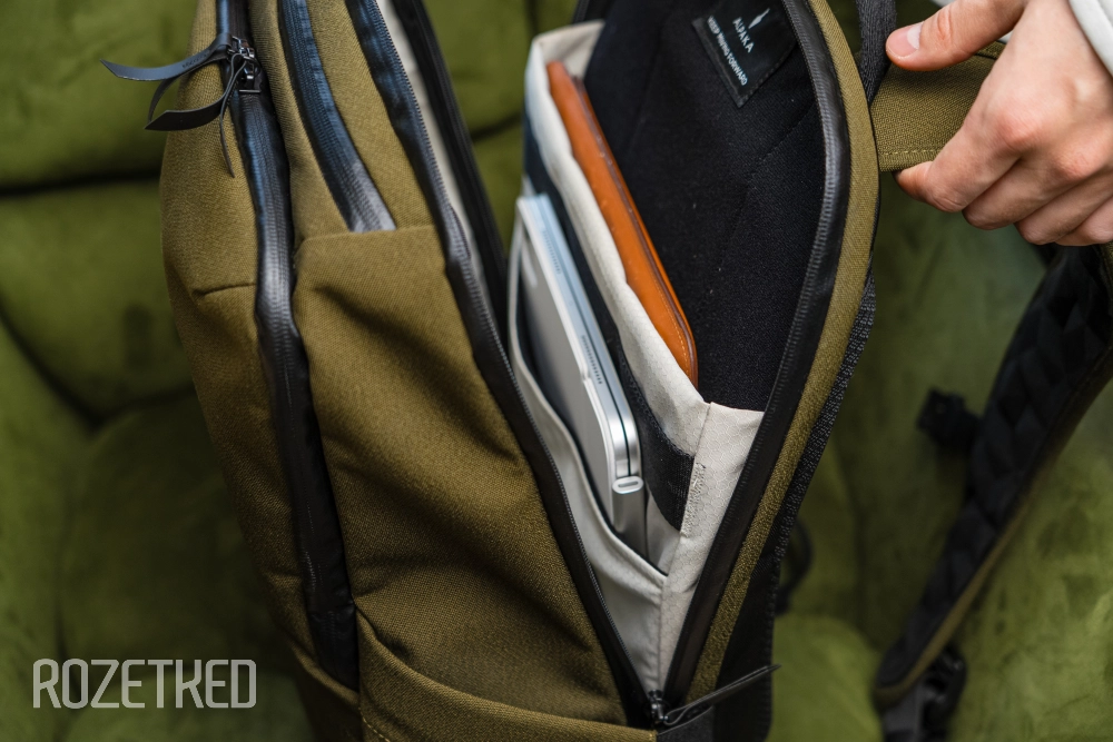 То же самое, но в 2 раза больше — на 12 литров. Это если понравился дизайн, но хочется и ноутбук носить. Не то чтобы это рекомендуется компанией, но я ношу свой MacBook Pro 14. Главное не ударять, а то защиты особой нет.