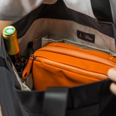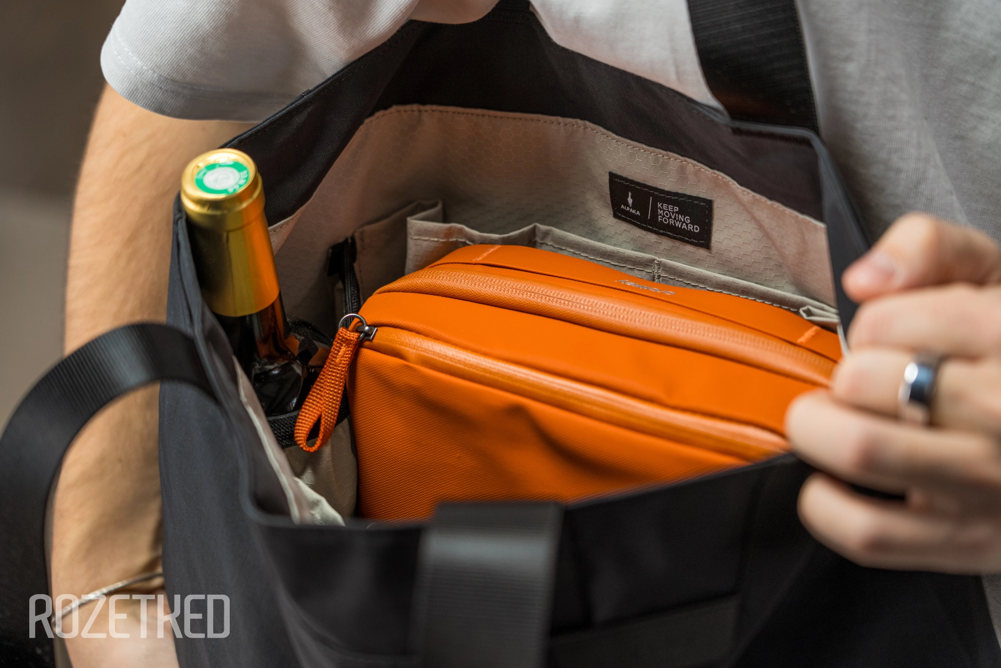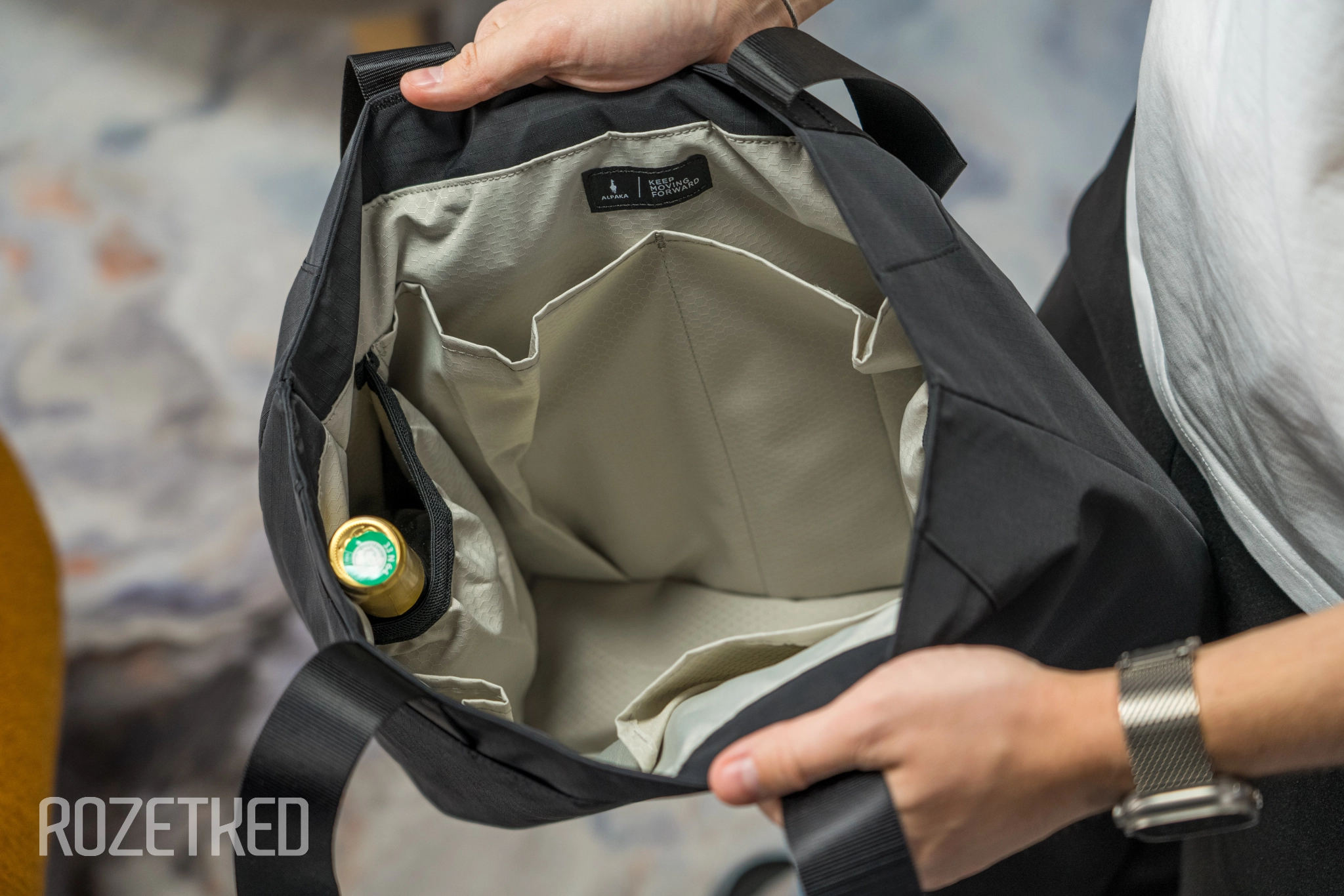 Те же материалы, та же логика и на один карман больше. Здесь, конечно, хотелось бы побольше внутренних разделителей или карманов для мелочей. Всё же сумка совершенно другого объёма. Впрочем, меня это не смущает и лето я с ней езжу в офис с ноутом и камерой Fujifilm XM-5 внутри.