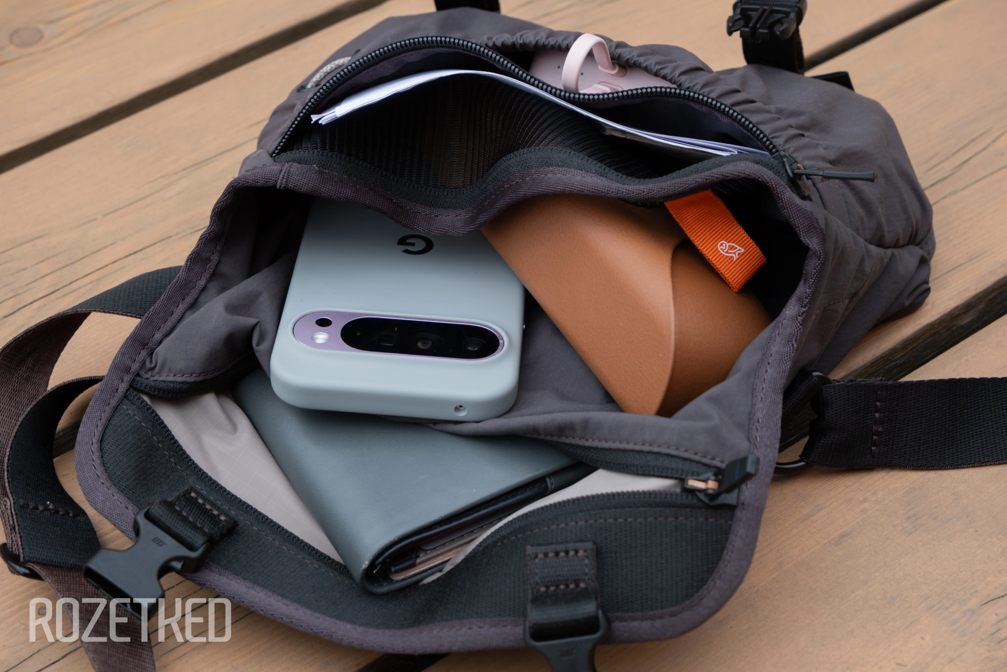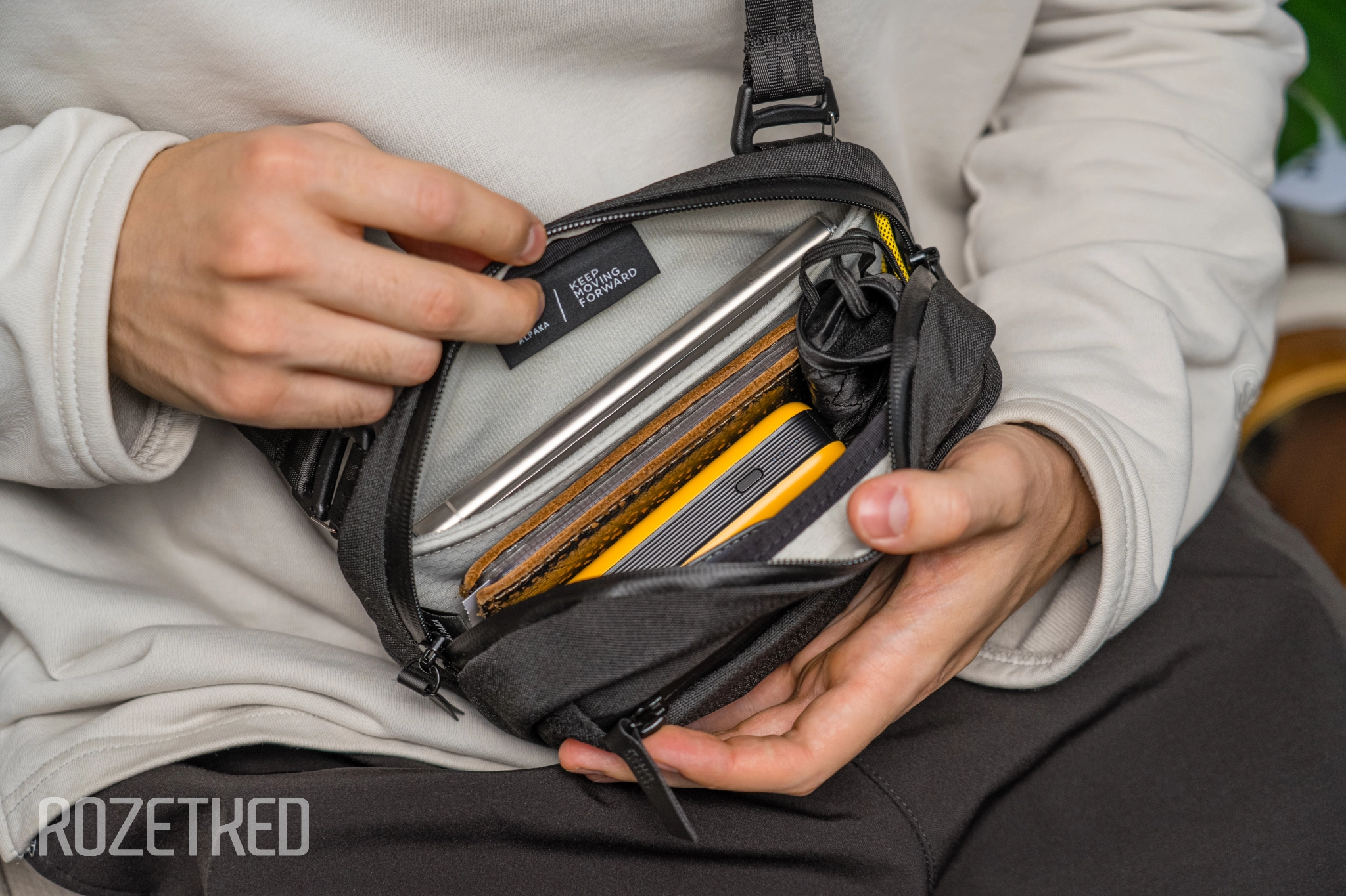 Если нужен слинг на каждый день, то это золотая середина. Он не маленький и не огромный. 2,5 литра — то, что нужно, чтобы положить смартфон, кошелёк, повербанк, очки, наушники, ключи и пойти по делам.