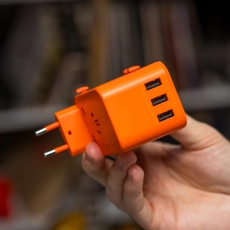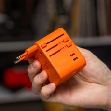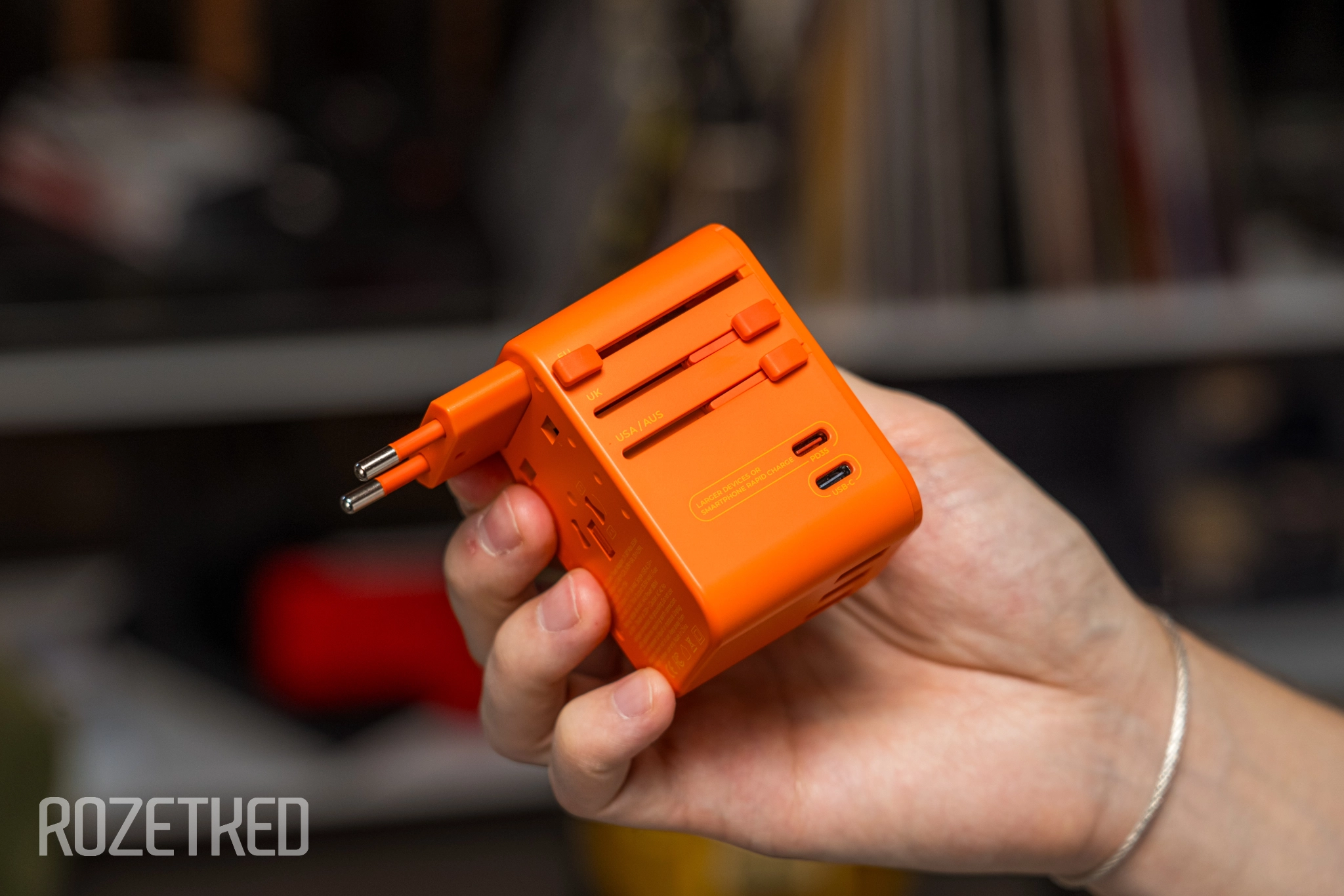 Это универсальный адаптер для путешествий, который работает более чем в 170 странах и заряжает до 6 устройств одновременно. Его можно вставлять в практически любые розетки благодаря наличию разных типов вилок. При этом и подключать к нему можно что угодно.
