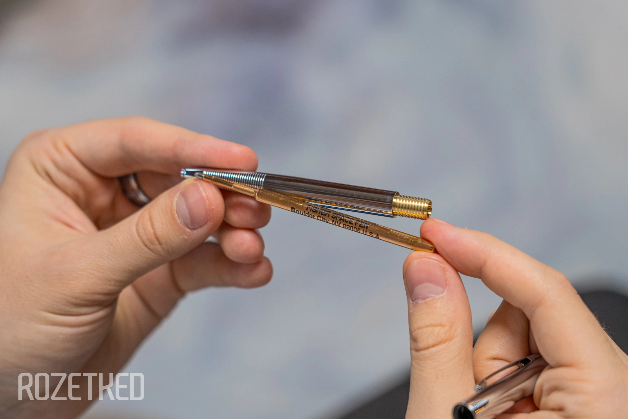 Вся магия в специальном стержне, внутри которого не обычные жидкие чернила, а густая паста. Чернила не вытекают под действием гравитации, а выталкиваются давлением.