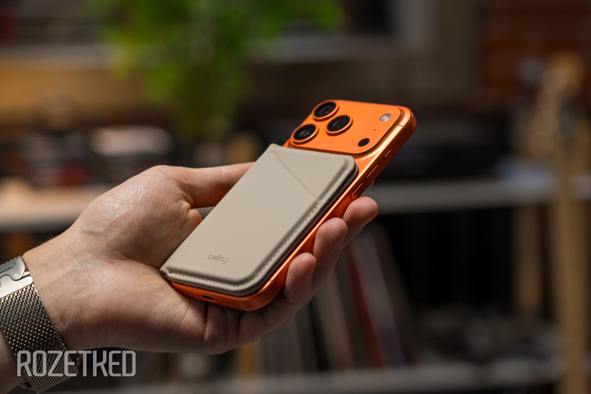 Snap-On — один из самых тонких и функциональных MagSafe-картхолдеров. Вмещает в себя две карты и складывается в подставку. Сделана из эко-кожи в огромном количестве цветов, не самая долговечная вещица, но это с лихвой компенсируется ценой в районе 3 тысяч рублей.