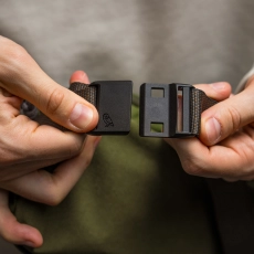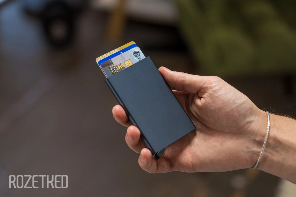 Компания Secrid известна своими металлическими картхолдерами, которые просты как три копейки. Прямогольный корпус и пластиковый механизм со «спусковым крючком», который по нажатию выталкивает все карты лесенкой для удобного доступа. Конструкция крайне удачная, гораздо удобнее, чем обычные кардхолдеры, из которых нужно вытягивать карты пальцем, часто ещё и лишние прихватываешь.