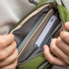 Основное отделение раскрывается на 180 градусов, чтобы удобно упаковывать вещи. Суммарный объём 20 или 24 литра в зависимости от версии, маленького легко хватит на поездку длиной в 2-3 дня.