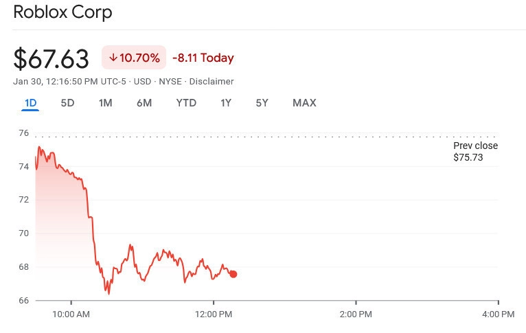 - цена акций Roblox — на 10%;