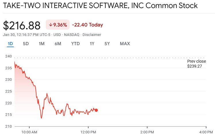 - цена акций Take-Two упала на 9%;