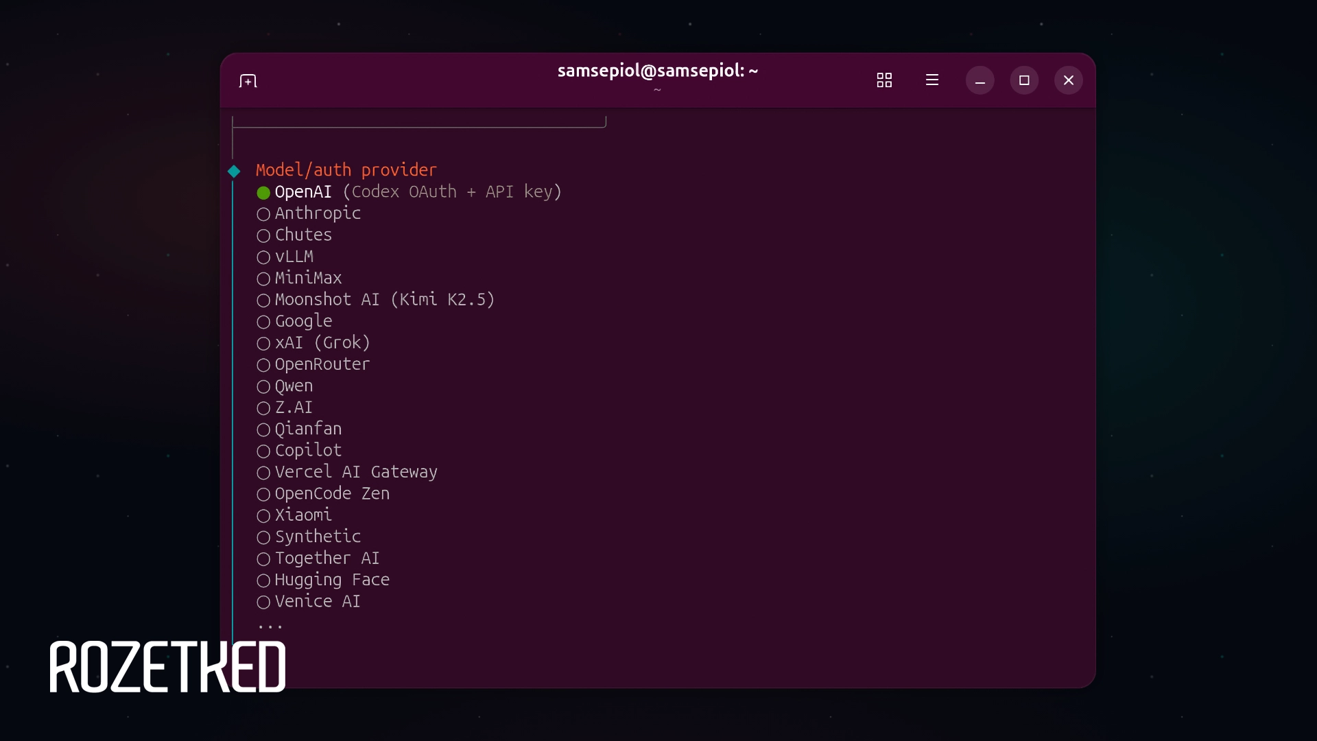 - В качестве провайдера ИИ выберите желаемую опцию, пройдите авторизацию и выберите конкретную модель, которую будет использовать OpenClaw.